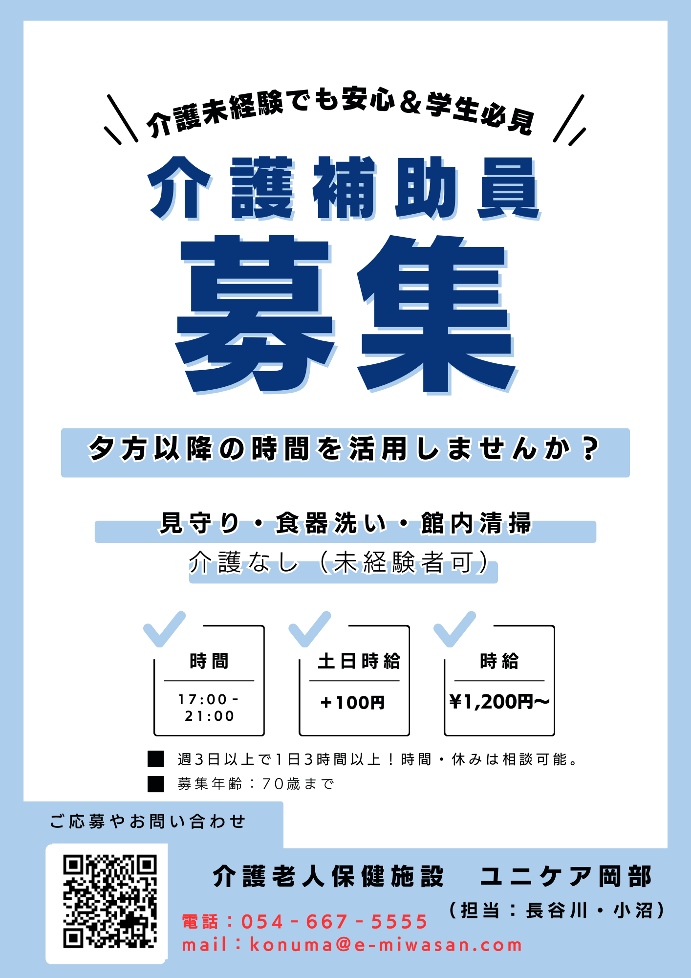 お知らせNEWS一覧 2026年01月27日 おしらせ 【三輪医院グループ】パート職員時給改定のお知らせ 2026年01月27日 採用情報 【ユニケア岡部】介護補助員の募集 2026年01月16日 採用情報 外来看護師、三輪医院リハビリセンタースタッフ募集中!!! 2025年11月02日 採用情報 ユニケア岡部 令和9年4月卒業予定 新卒採用募集開始! 2025年11月09日 おしらせ 【ユニケア岡部】インフルエンザ注意報発令に伴う面会制限のお知らせ 三輪医院オンライン受付 一般診療の詳細はこちらを参照ください 予防接種の詳細はこちらを参照ください三輪医院グループ 各公式LINEアカウントLINEで「友達登録」をして頂くと下記の対応が可能となります!★三輪医院診療電話予約、診療WEB予約、予防接種WEB予約、三輪院よりの情報発信★ユニケア岡部総合案内、入所相談、ショートステイ、通所リハビリ等との情報交換↑詳細をご確認ください↑ユニケア岡部入所ユニケア岡部デイケアみどりの風ケアハウスみどりの風デイサービス三輪医院通所リハ